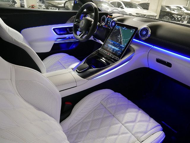 Ein strahlendes Entree: Die hochwertigen Einstiegsleisten aus Edelstahl sind mit einem „AMG“ Schriftzug beleuchtet. Dieses stimmungsvolle Lichtspiel wertet den Zugang zu Ihrem Fahrzeug auf und heißt Sie bei jedem Öffnen der Tür willkommen.