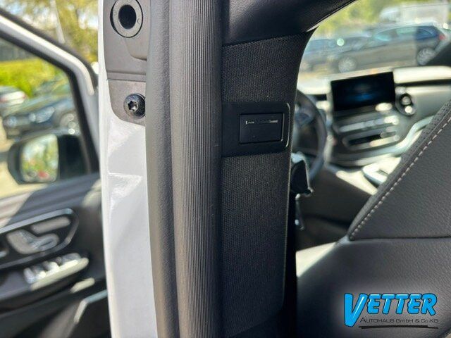 Die beleuchteten „Mercedes-Benz“ Schriftzüge mit Edelstahlblende vermitteln Exklusivität bereits beim Einstieg. Beim Öffnen der Fahrer- und Beifahrertür werden die Schriftzüge vorn beleuchtet, beim Öffnen der vorhandenen Schiebetüren auch hinten.