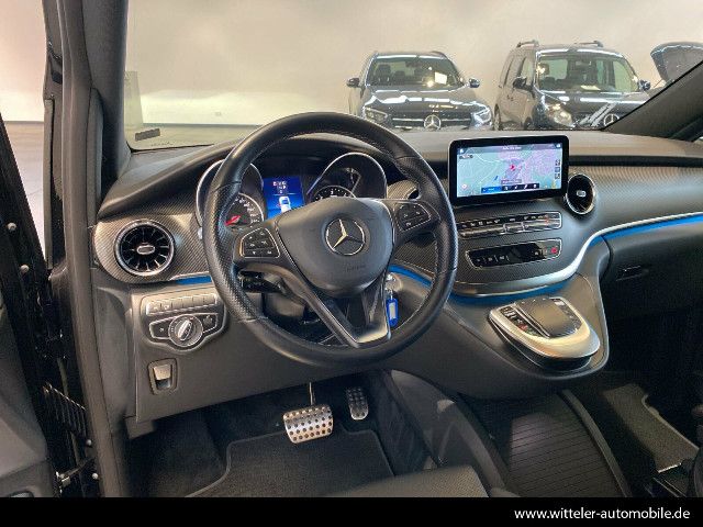 Funktional und optisch attraktive Ausstattungen steigern Sportlichkeit und Exklusivität der V-Klasse AVANTGARDE. Die vanadiumsilber lackierten 43,2 cm (17 Zoll) Leichtmetallräder im 5-Speichen-Design, hochwertig gestaltete LED-Scheinwerfer und Heckleuchten sowie der Bordkantenzierstab und das Chromzierelement im Heck verfeinern das Exterieur.